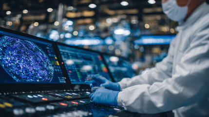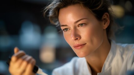 Scientist carefully transferring liquid samples in a sterile lab. Featuring accuracy and innovation