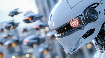 Future robot with red eyes, transformer