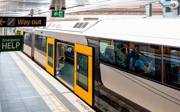 Scenes in the Sydney Metro, a fully automated rapid transit system serving the city. and consists of 13 stations and 36 km of twin tracks, mostly underground. Sydney, Australia 2020