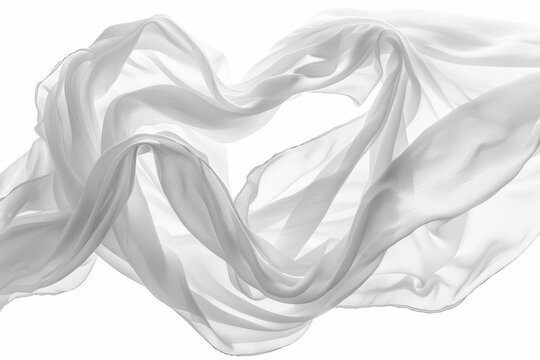 billowing white silk fabric frozen in graceful arc translucent folds catching light dynamic movement pure white background highkey studio lighting