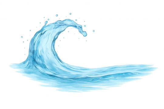 Crystal-clear water curling dynamically, forming translucent arc with smooth motion and pristine texture against pure background