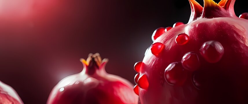 Close up macro shot of juicy pomegranate seeds glistening red and translucent