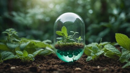 A large translucent pill capsule floating in midair