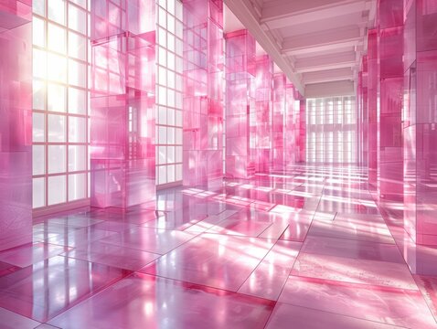 An abstract arrangement of colorful translucent columns in a sunlit room, creating vibrant and dynamic light patterns.