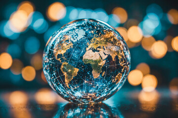 Translucent globe or glass globe with bokeh in a dark background, Environmentally global concept