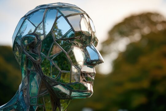 Mirrored mosaic head sculpture outdoors