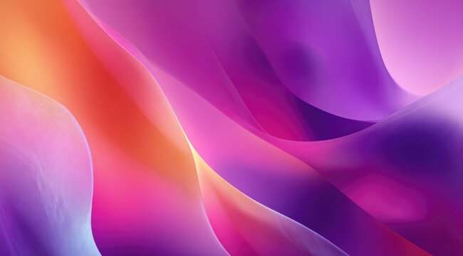 Abstract image featuring flowing, translucent forms in vibrant hues of purple, pink, and orange.  The colors blend seamlessly, creating a soft, ethereal effect