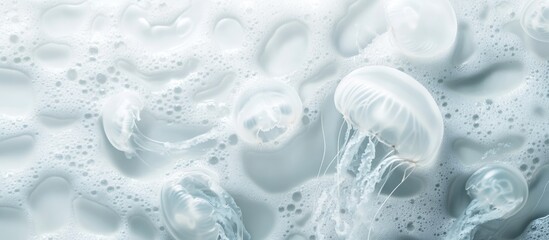 White foam texture featuring jellyfish on a clean background ideal for overlays and text placement in aquatic-themed designs.