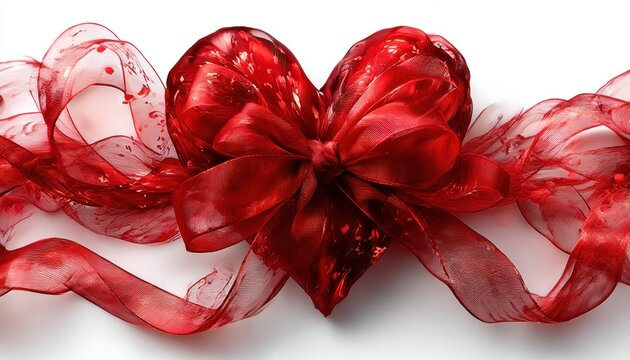 Flowing red lace ribbon creating mirror reflection on glossy pink surface minimal texture