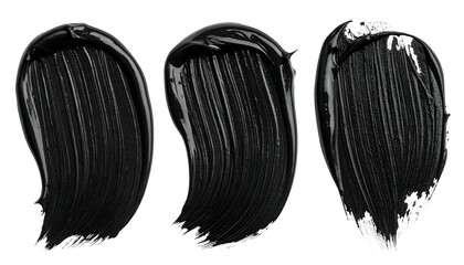 Three glossy black brushstrokes with a translucent effect, on a black background