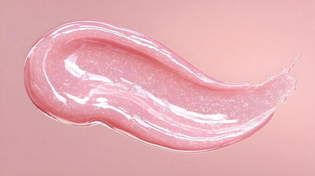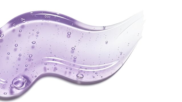 Abstract macro shot of thick, clear cosmetic gel spread on a white background, highlighting wavy texture and trapped air bubbles, conveying purity and hydration.