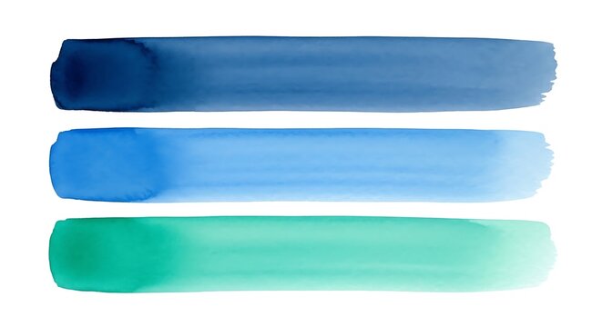 Three horizontal watercolor brush strokes in shades of blue and green.