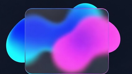 Abstract glassmorphism effect with vibrant blue and magenta blurred shapes on a dark background, creating a modern digital design.