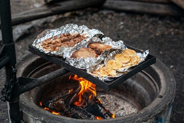A grid of aluminum food containers showcases a sleek, metallic pattern. These ready-to-go meals are designed for convenience, reflecting modern culinary efficiency and storage.