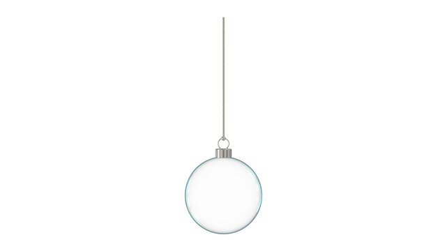 glossy transparent glass christmas ball hanging teal glow upright 3D rendering isolated silver fastening