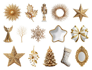 PNG Elegant gold Christmas decorations collection, element set on transparent background