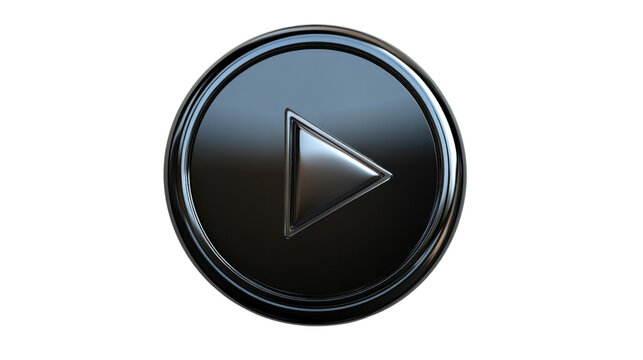 Glossy red push button shining on neutral gray surface with chrome bezel