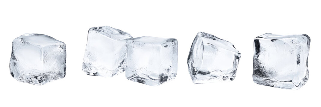 Top view of a pile of frosty frozen ice cubes on a blue background, refreshing, cold, ready for adding to a cold drink in a celebration or party or adding to a frozen fruit smoothie or blended dessert