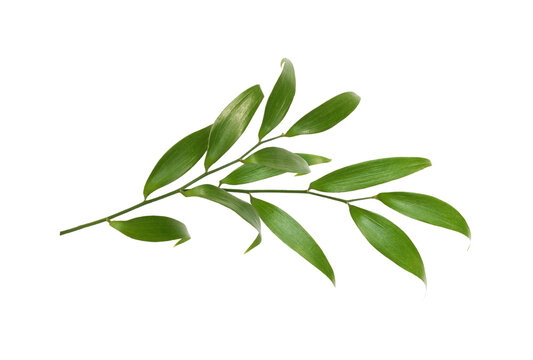 Green twig of italian ruscus (DANAE RACEMOSA) with fresh leaves isolated on white or transparent background