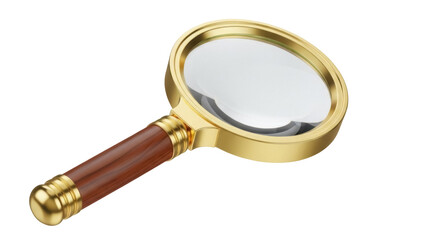 Magnifying glass with golden frame and wooden handle isolated PNG, vintage style search tool on transparent background