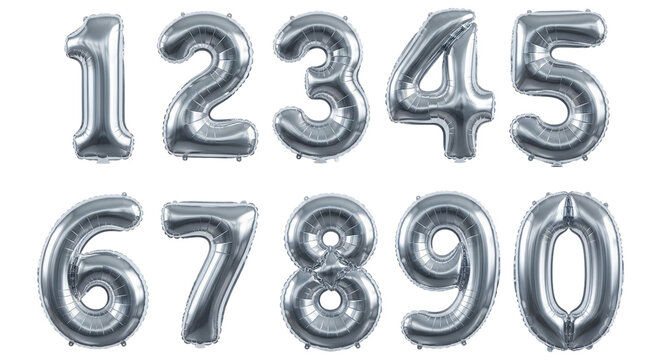 Silver foil balloon numbers isolated on transparent background for party decoration