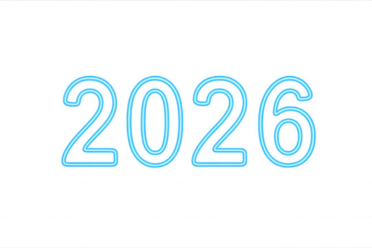 2026 neon year glowing bright blue light numbers on transparent background celebrating future new year modern design