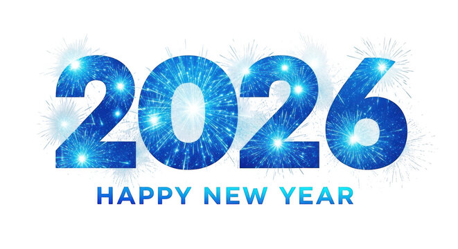 Happy new year 2026 blue sparkle numbers isolated on transparent background