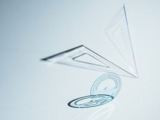 Futuristic glass dome projecting neon geometric shapes on chrome base with colored glow