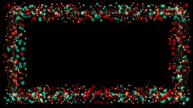 Glowing warm-white led fairy lights framing blank cream canvas for holiday greeting mockup