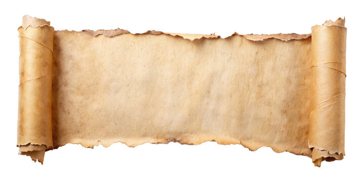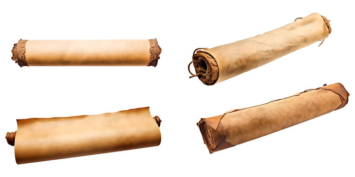 Vintage old parchment paper scroll full sheet set transparent background. Parchment paper scroll png bundle