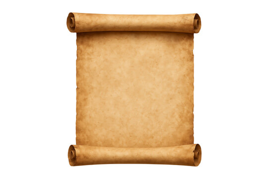 Old parchment scroll with rolled edges ideal for designs on transparent background