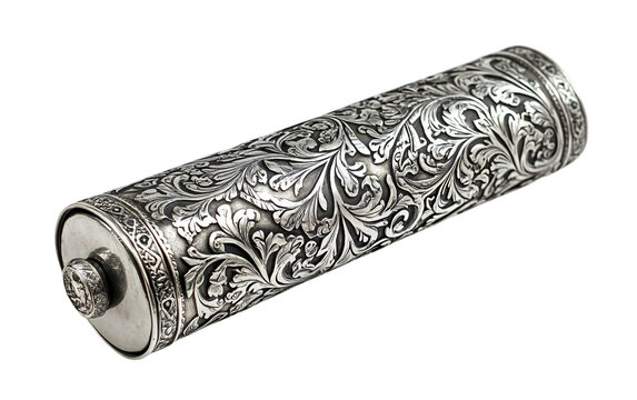 Exquisite Craftsmanship The Silver Megillah Scroll Case Isolated on transparent background.