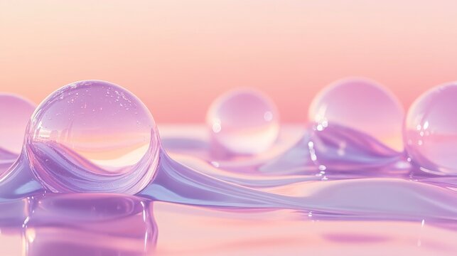 Transparent Spheres Resting on a Smooth, Wavy, Pink Surface