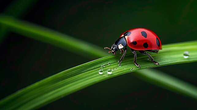 Ladybug traversing a dew kissed blade of grass Telephoto