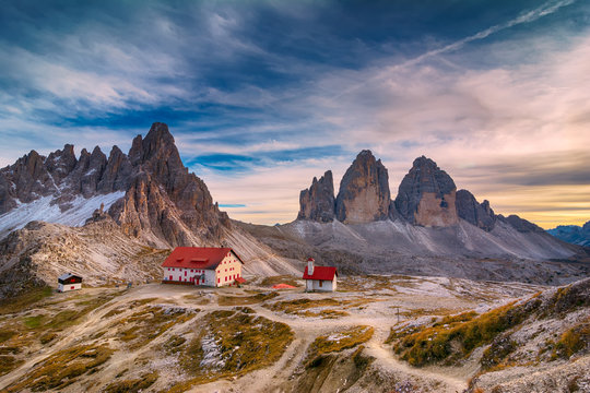Landscape of picturesque autumn mountains in natural park Tre cime di lavaredo