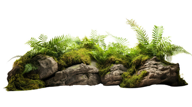 Lush forest with ferns and rocks in natural greenery