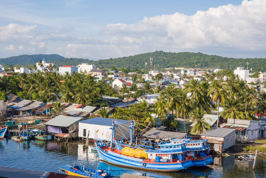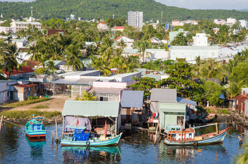 Fishing village on the river at Phu Quoc iasland, Vietnam.
