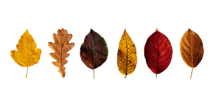 Autumn colorful collection of leaves isolated on a white  or invisible png background