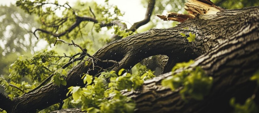 Storm causes big tree branch to fall.