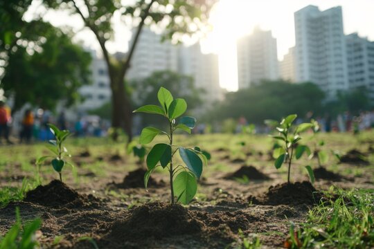 Urban Tree Saplings Growing in City Environment