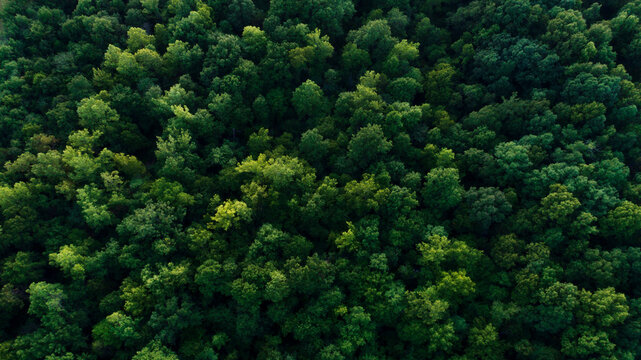 Lush Coniferous Forest Canopy, Aerial View, Rich Green Textures