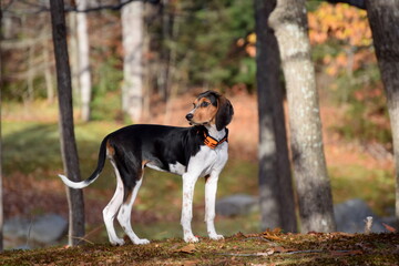 Majestic Treeing Walker Coonhound Running in Autumnal Woods
