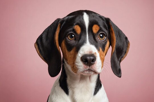 Treeing Walker Coonhound dog stands alertly, showcasing its tri-color coat against a white background.