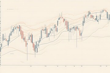 Financial data visualized with candlestick charts and trend lines. A depiction of market volatility and trading