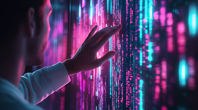 Stock market data analysis on digital screen