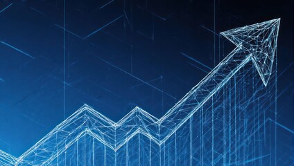Dynamic financial growth chart with glowing blue lines and ascending bars, illustrating market trends and successful investment strategies against a blurred office.