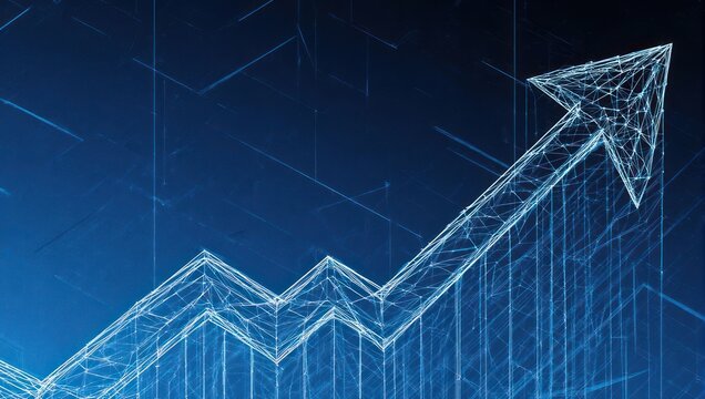 Abstract graphic of a rising line graph.  Networked lines form an upward trend