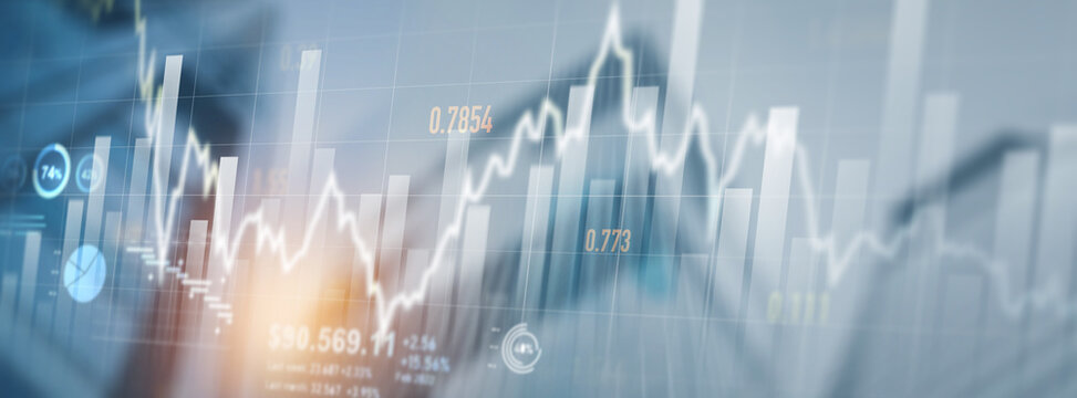 Financial graph with up trend line candlestick chart in stock market on neon color Widescreen background