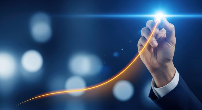 Digital graph with upward trending line, representing data growth and technological advancement