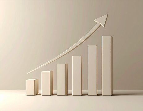 A beige 3D bar chart with an upward trending arrow illustrates positive financial growth against a neutral background.